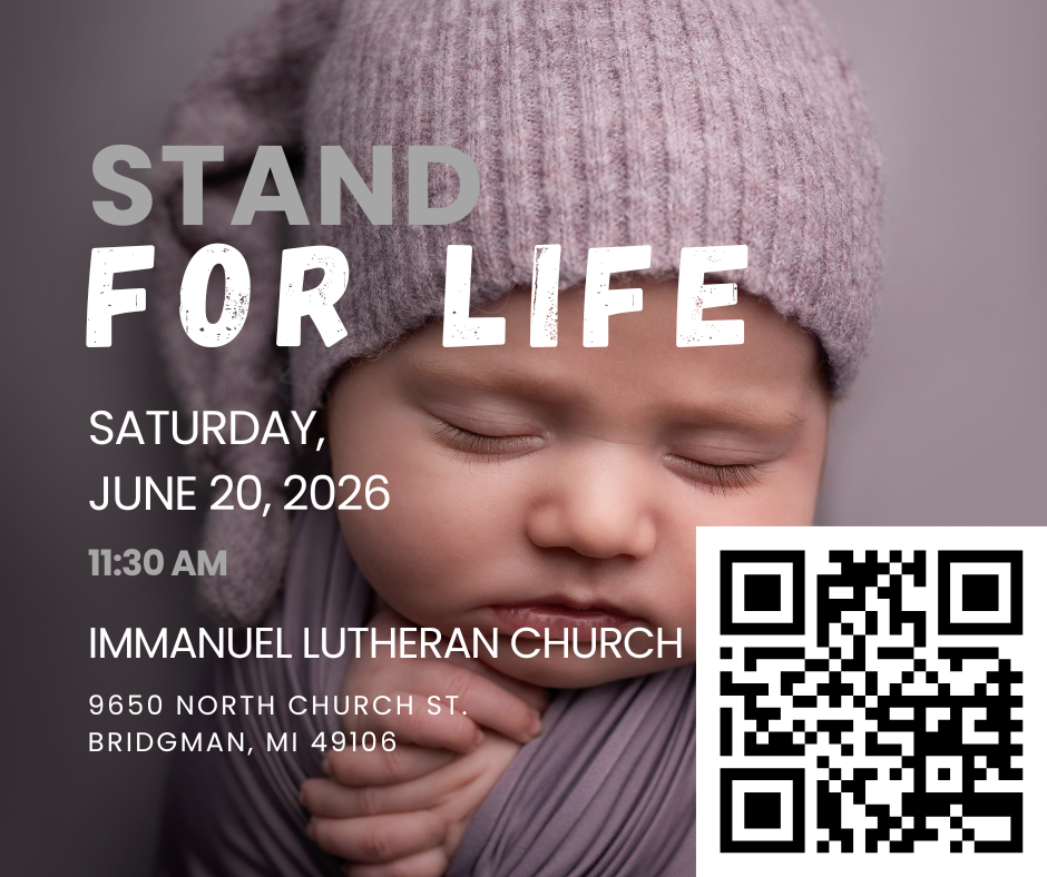 Join us for Stand for Life, a community gathering in Bridgman where we come together to take a stand for LIFE. The day begins with a brief program and walk to City Hall, followed by a luncheon.
